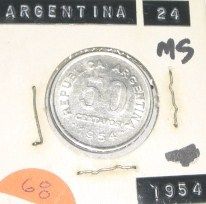 1954 ARGENTINA 50 CENTAVOS *RARE MS HIGH GRADE!! COIN CAME OUT OF SAFE!! ***Coin, Currency & All Items Listed in this auction - Grades, Conditions and Values are not Safe Deposit Coins LLC Responsibilty. Grades, Condition and Values are determined by Consigner(s) & Buyers ONLY