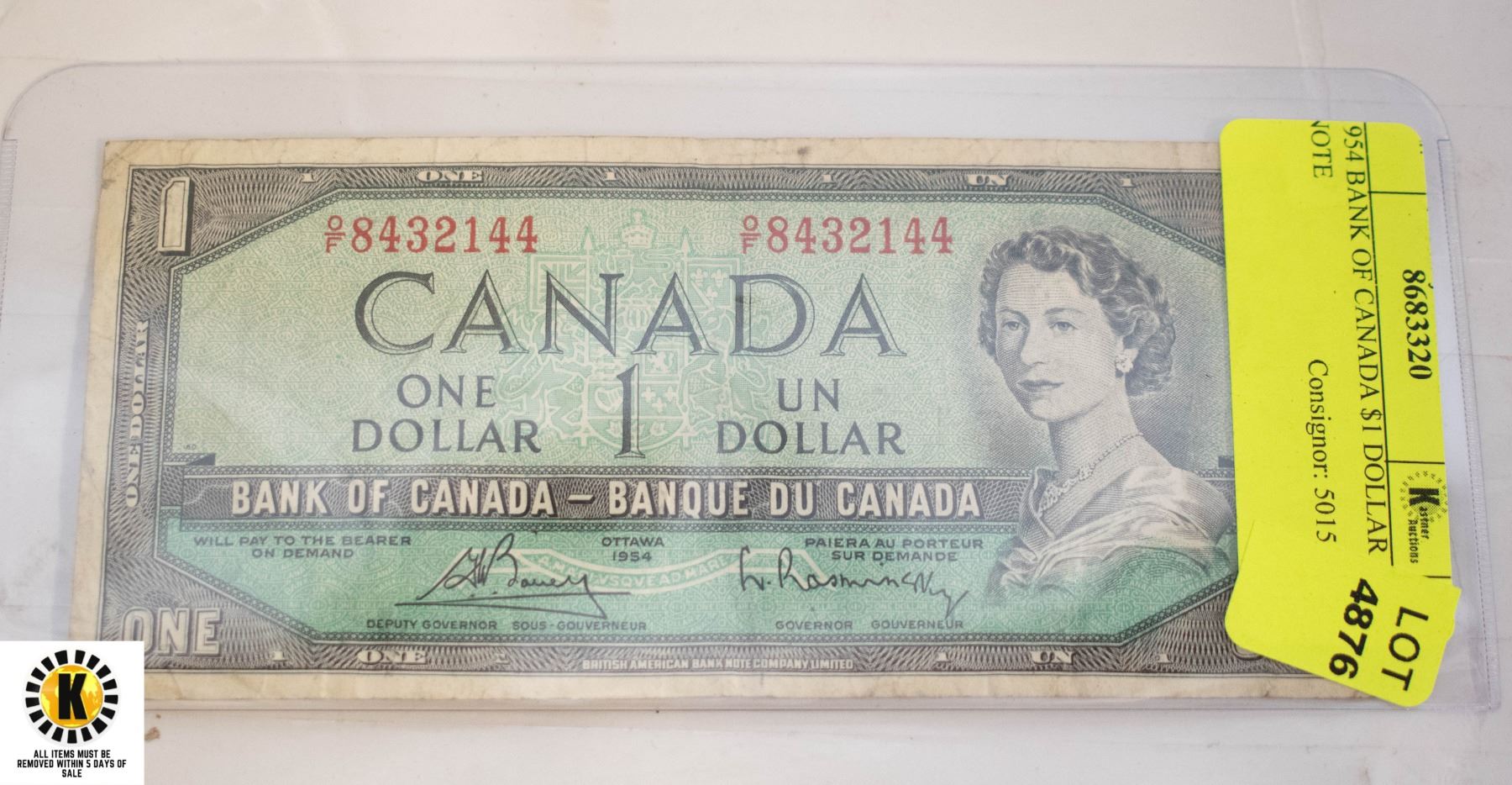 1954 BANK OF CANADA $1 DOLLAR NOTE