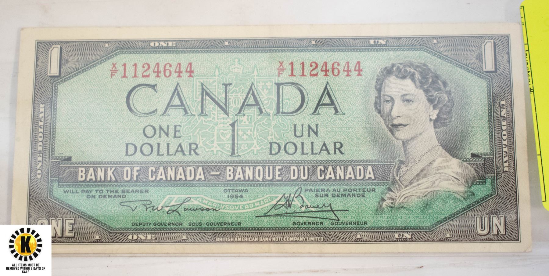 1954 BANK OF CANADA $1 DOLLAR NOTE