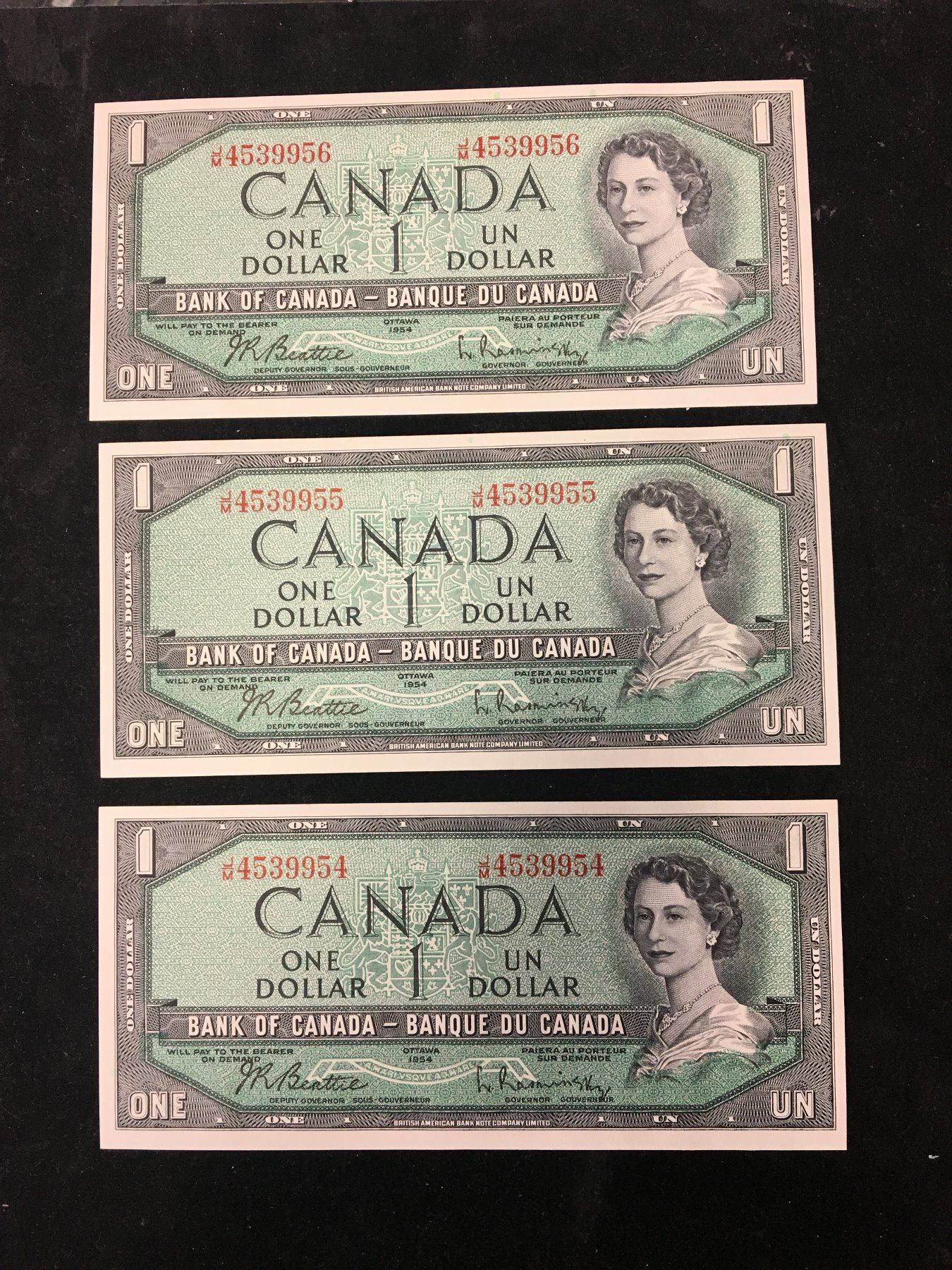 NICE LOT OF 3 NOTES .. 3 IN SEQUENCE.BEATTIE/RASMINSKY!CHOICE UNC