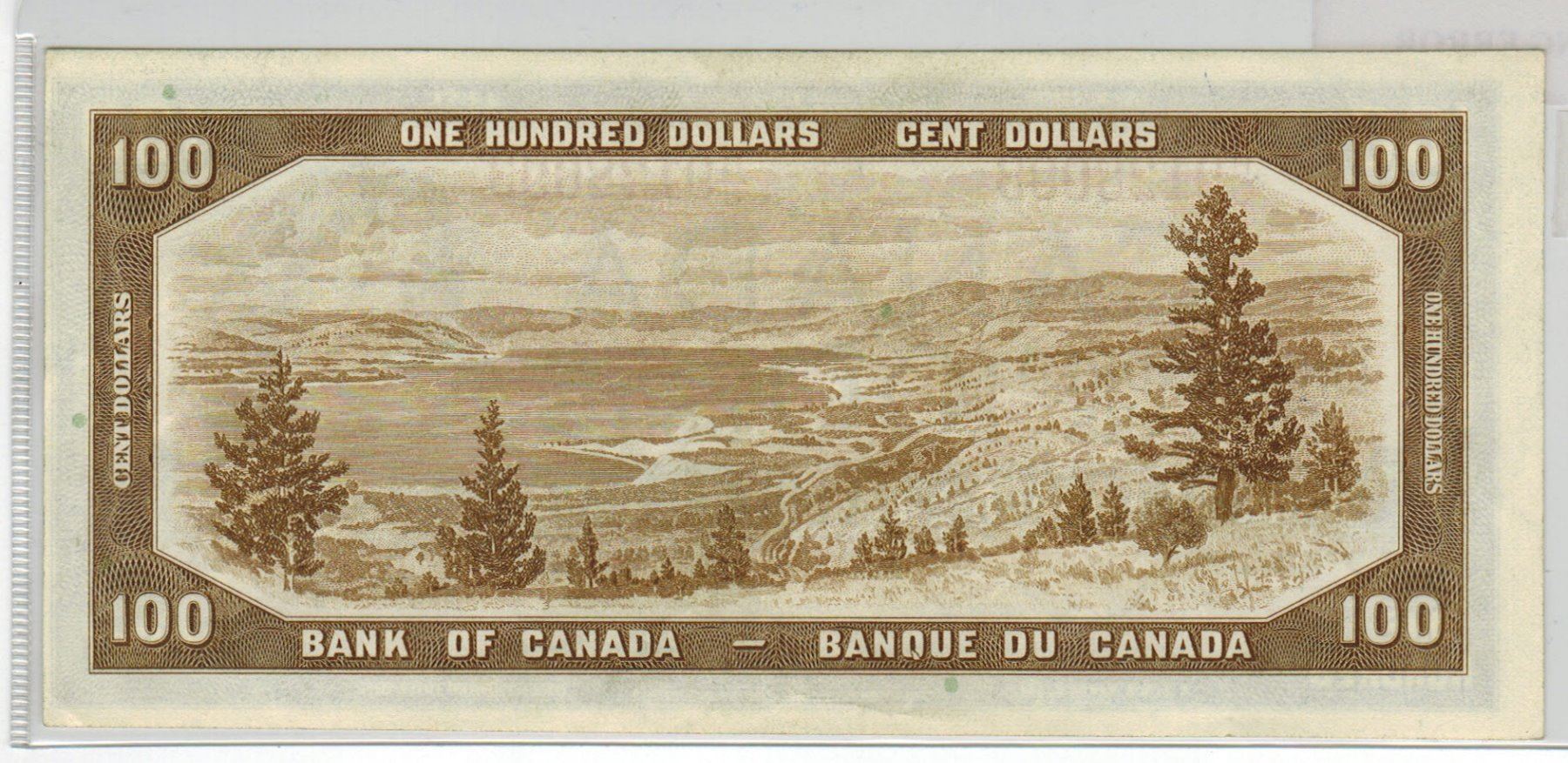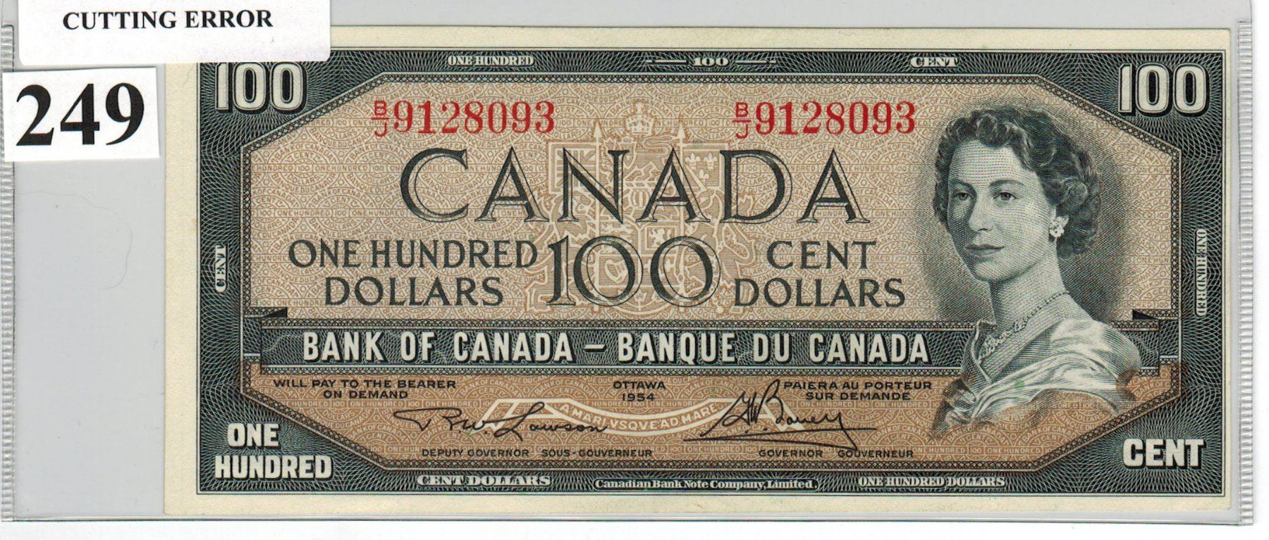 1954 BANK OF CANADA - $100.00 BANKNOTE - CUTTING ERROR-RIGHT BORDER MISSING