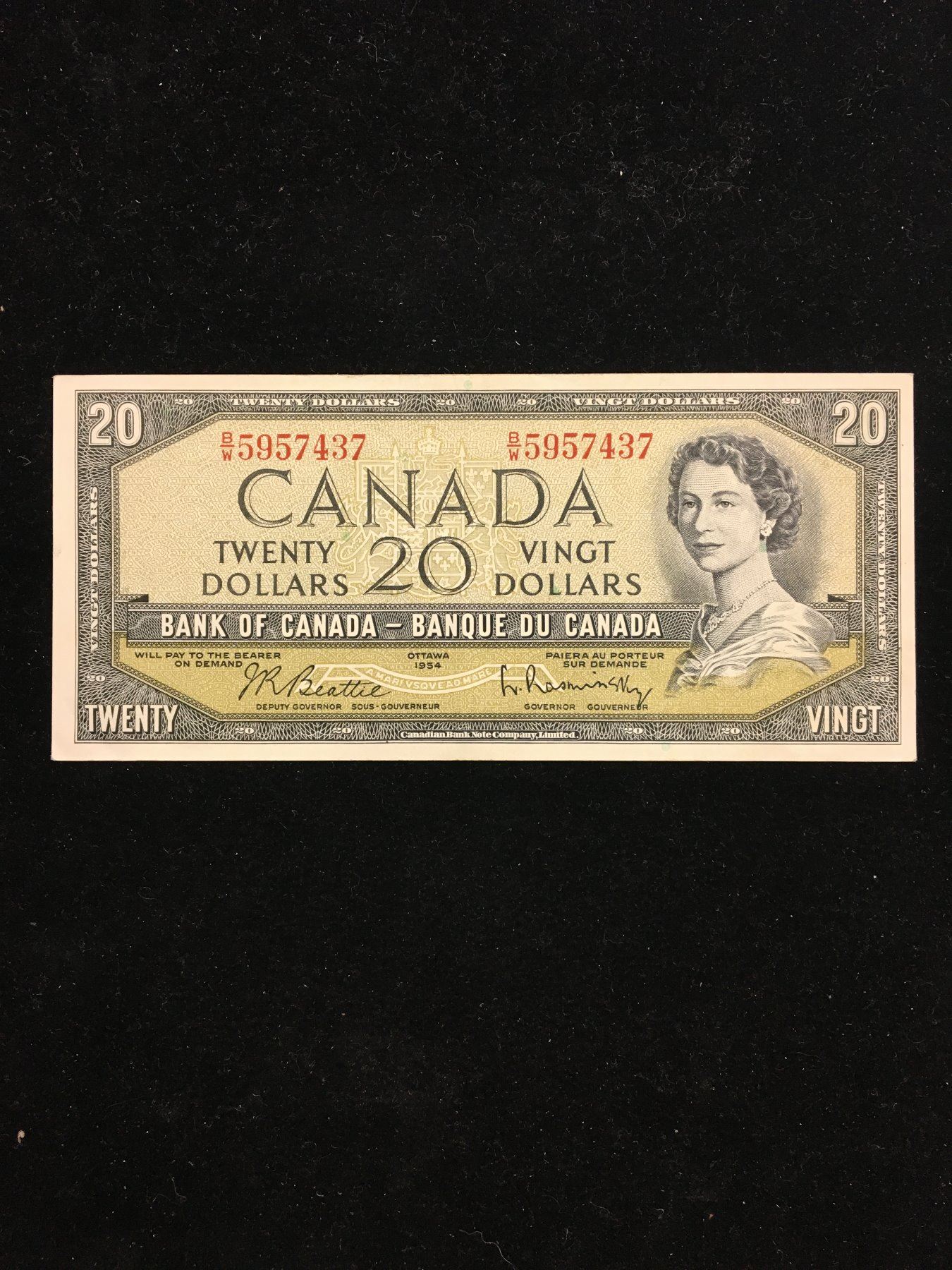 1954 BANK OF CANADA $20.00 NOTE! MODIFIED..BEATTIE/RASMINSKY