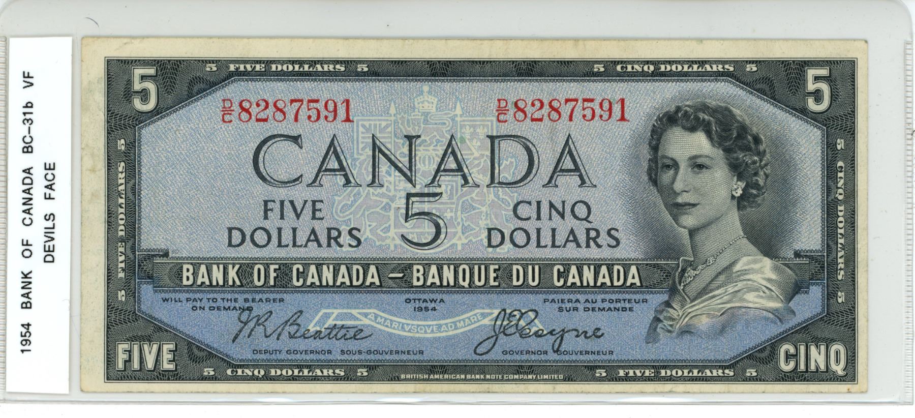 1954 BC-31b Five dollar Devils Face Beattie-Coyne D/C8287591 VF