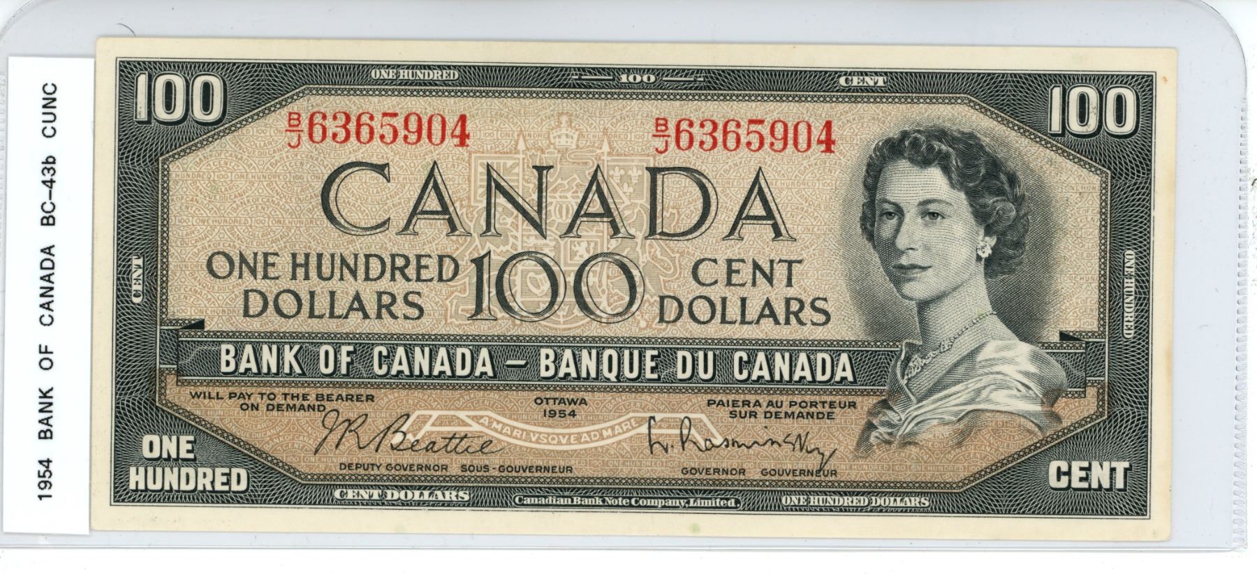 1954 BC-43b Hundred dollar Beattie- Rasminsky B/J6365904 CUNC