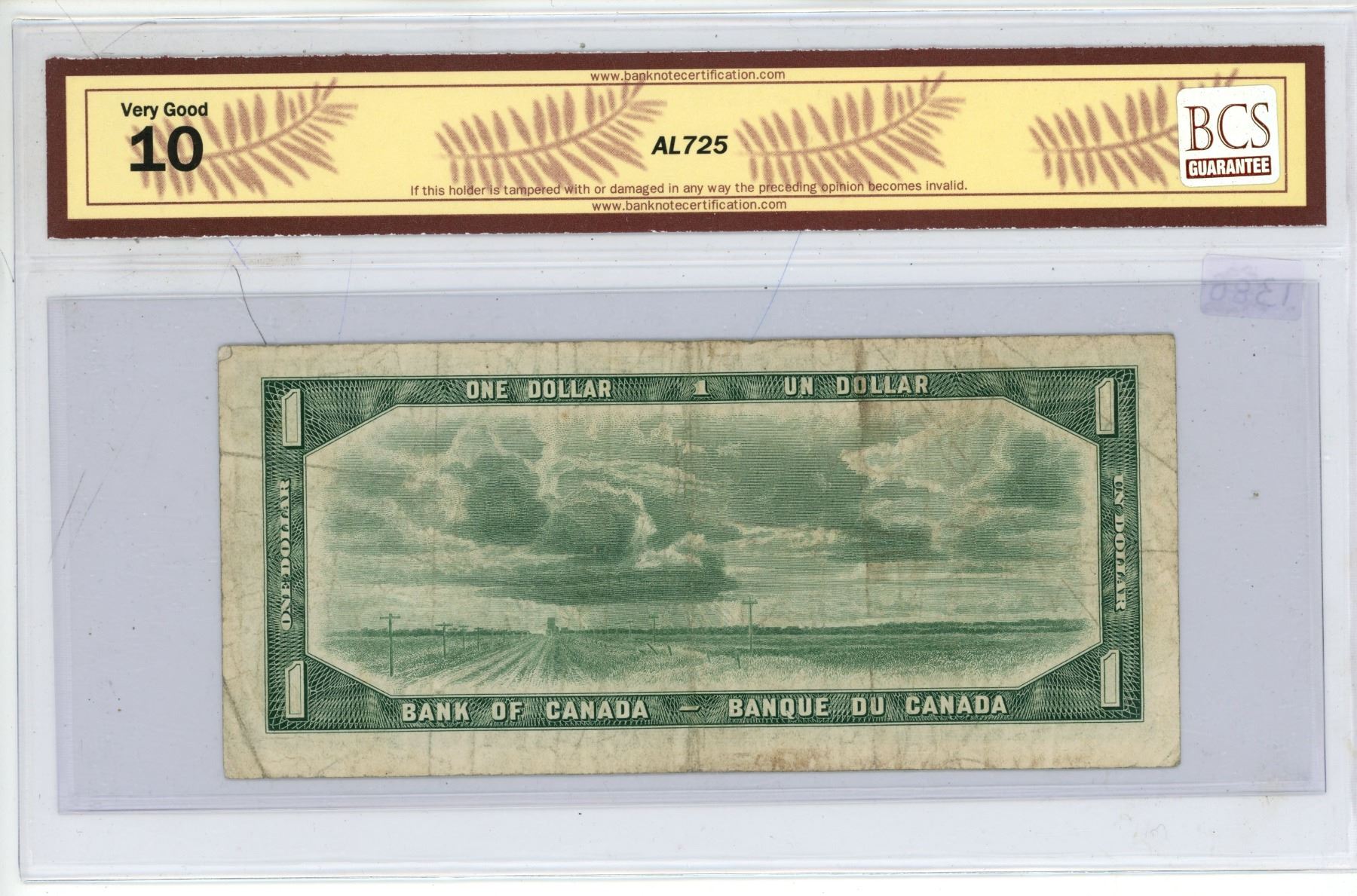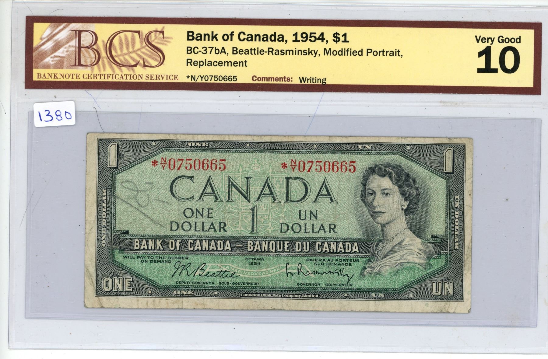 1954 BCS Graded - One Dollar Asterick Canadian Bank Note - VG10