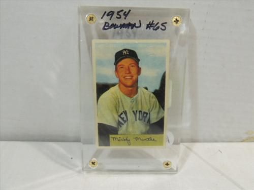 1954 BOWMAN #65 BASEBALL PLAYER CARD MICKEY MANTLE. AS SHOWN. VIEW PICTURE FOR DETAIL.