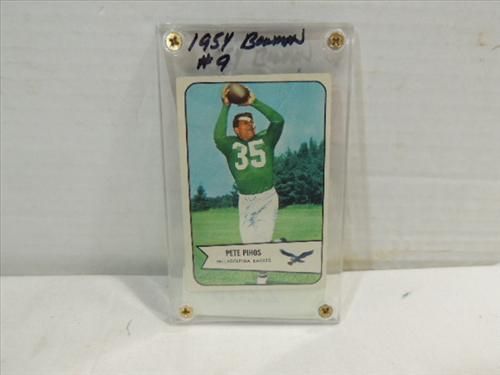 1954 BOWMAN #9 FOOTBALL PLAYE RCARD PETE PIHOS. AS SHOWN. VIEW PICTURE FOR DETAIL.