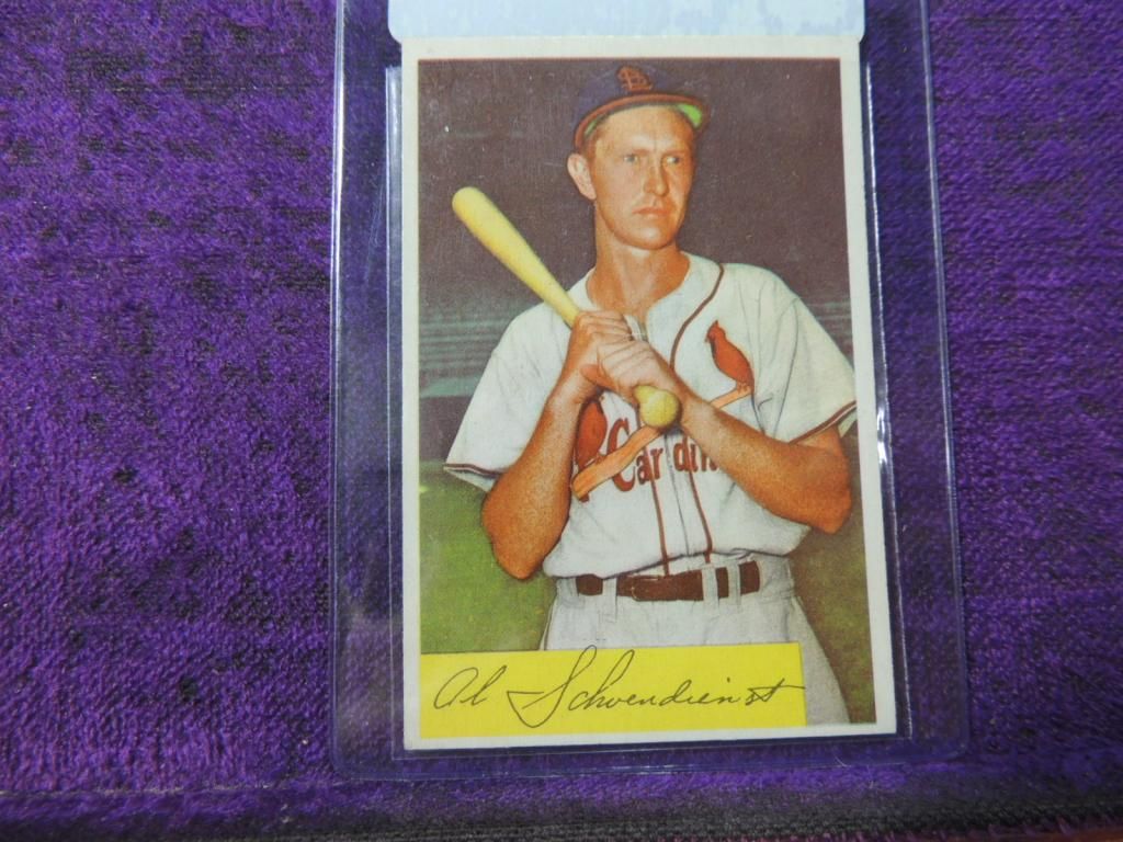 1954 BOWMAN AL "RED" SCHOENDIENST BASEBALL CARD. #110 VERY GOOD CONDITION. BASEBALL CARD. TRADING CARD. COLLECTIBLE. VINTAGE CARD. PROTECTIVE PLASTIC SLEEVE. RARE CARD. AS SHOWN. SEE PHOTO FOR MORE DETAILS.