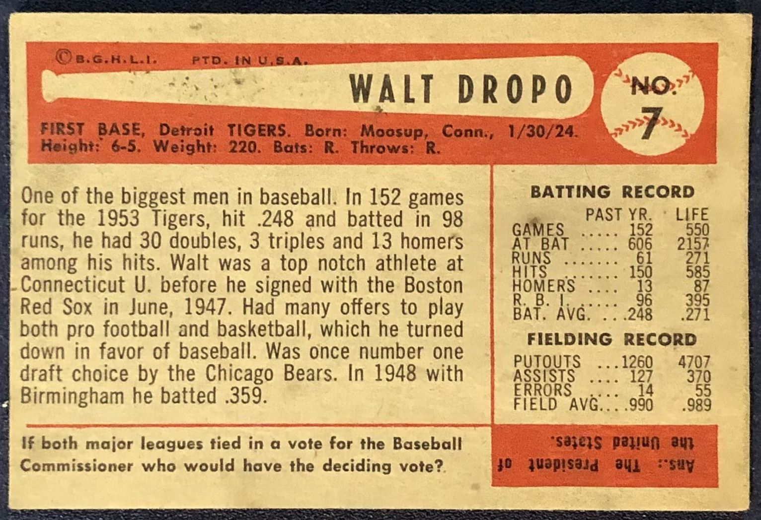 Card #7 MLB, baseball, vintage
