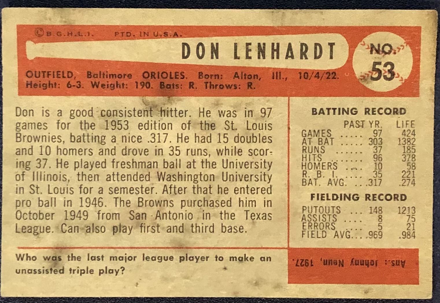 Card #53 MLB, baseball, vintage