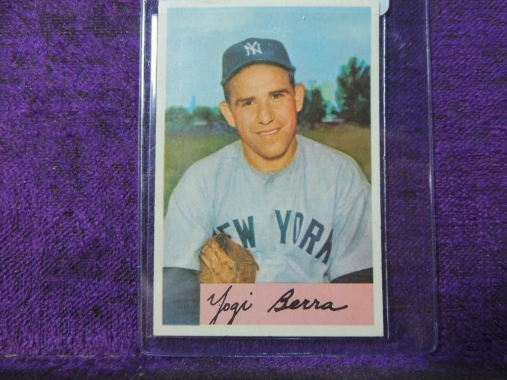 1954 BOWMAN LARRY "YOGI" BERRA #161 BASEBALL. VERY GOOD CONDITION. BASEBALL CARD. TRADING CARD. COLLECTIBLE. VINTAGE CARD. PROTECTIVE PLASTIC SLEEVE. RARE CARD. AS SHOWN. SEE PHOTO FOR MORE DETAILS.