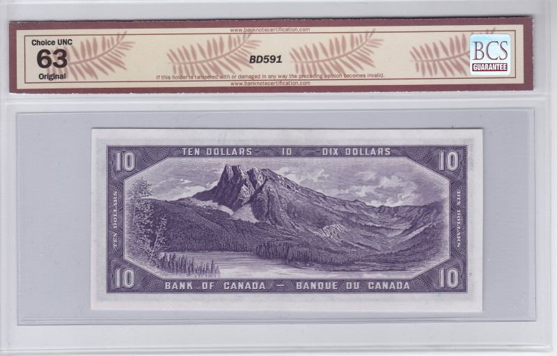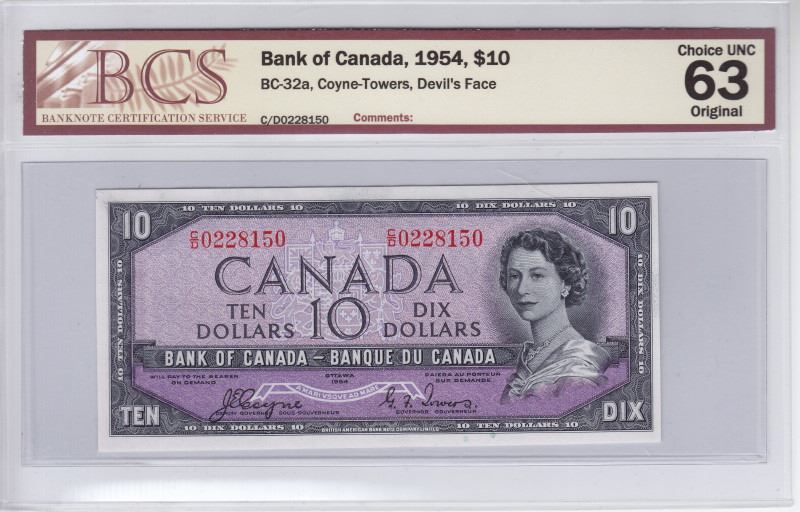 1954 Bank Of Canada $10 Devil's Face Bank Note - Coyne/Towers - BCS Certified Choice UNC 63 - BC-32a - Trends Value $400