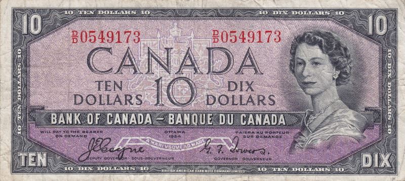 1954 Bank Of Canada $10 Devil's Face Bank Note - Coyne/Towers - F - BC-32a