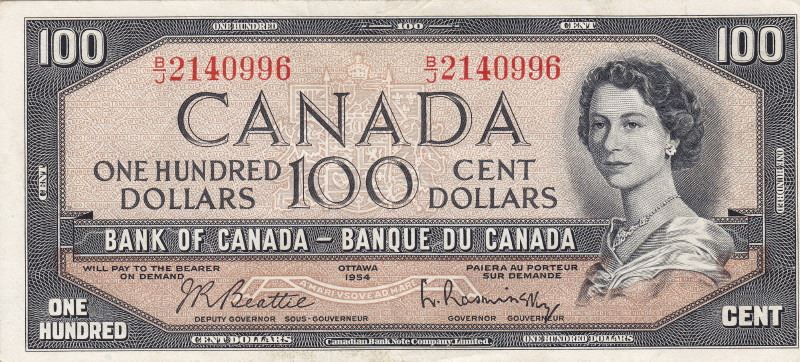 1954 Bank Of Canada $100 Bank Note - Modified Portrait - BC-43b - Beattie/Rasminsky