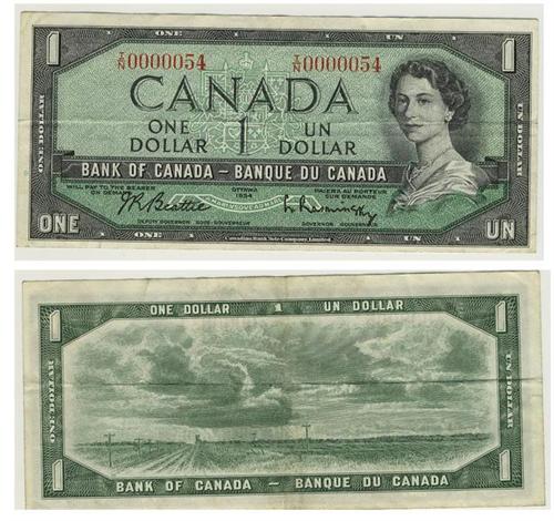 1954 Bank of Canada $1.00 Low Serial #
