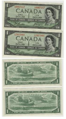A fresh crisp pair of devil's face notes, nice even centering. Serial #'s L/A0667117 & L/A2415861, Beattie-Coyne(no return).
