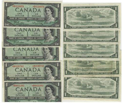 5 miscellaneous asterisk replacement notes with prefix *B/M. Fresh group has no tears and only 1 note with minor soiling on back (no return).BC-37bA-i