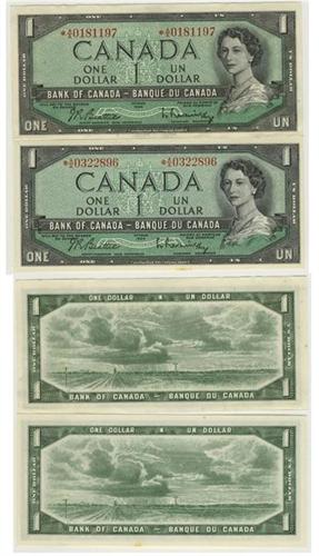 Pair of asterisk replacement notes (one piece has a bit of a ripple from improper storage) no return. Serial #'s *A/A0181197 & *A/A0322896, Beattie-Rasminsky.