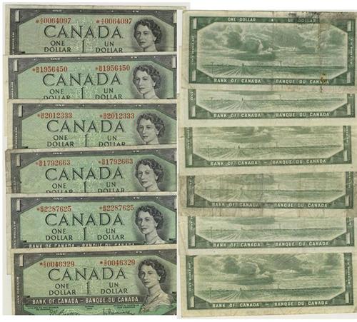 6 miscellaneous asterisk notes prefixes *A/A; *B/M; & *S/O. Average circulated condition (no return), Beattie-Coyne & Beattie-Rasminsky signatures.