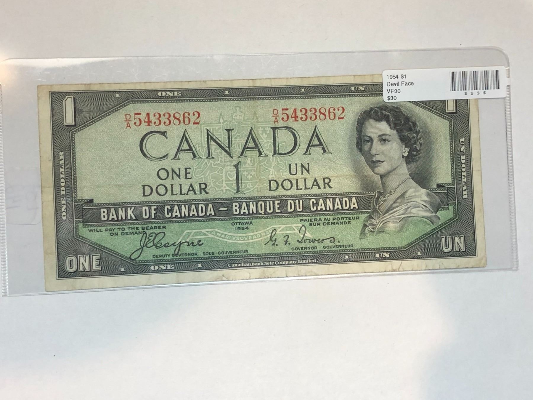 1954 Bank of Canada $1 Bill - Devils Face VF30