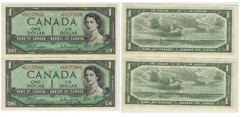Very fresh crisp *S/O replacement notes. Sequential pair with counting crease. #0277059 & #0277060 Beattie-Rasminsky BC-37bA, no return.