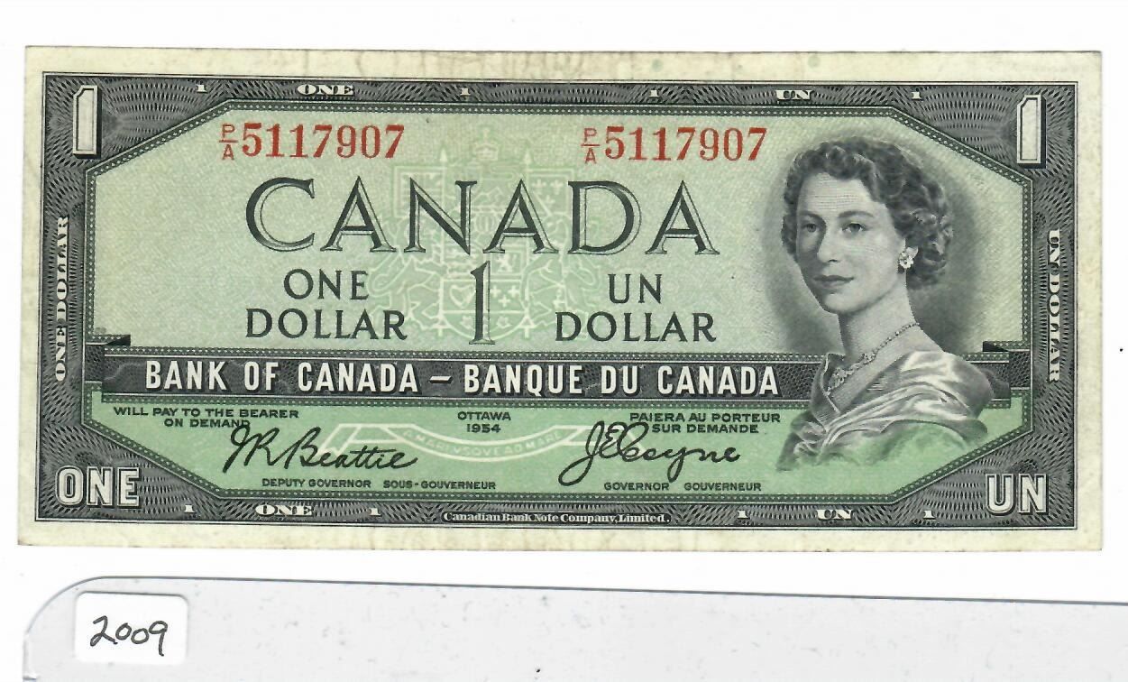 1954 Bank of Canada $1 bill with Devil's face in hair