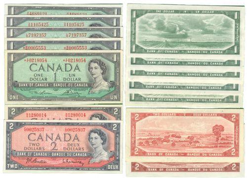 0788 - 1954 Bank of Canada $1's&$2's-EF/Unc