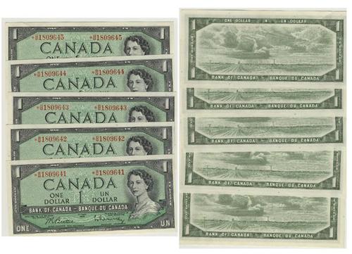 5 Sequential unc asterisk replacement notes, lightly mishandled. #'s*B/M1809641-1809645, Beattie-Rasminsky BC-37bA-I. No return.