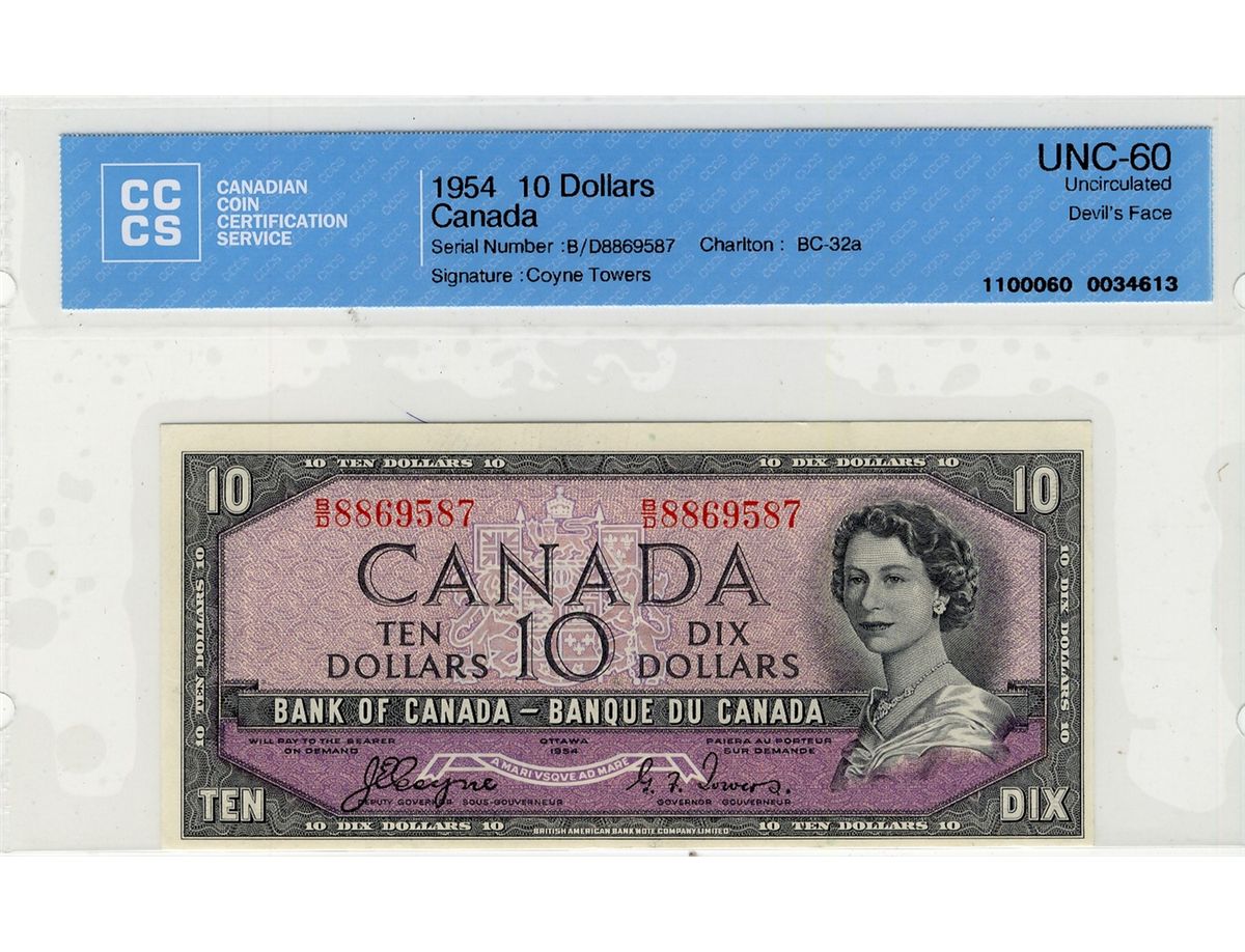 1954 Bank of Canada; 10 Dollars BC-32a, CCCS UNC60; #BD8869587.