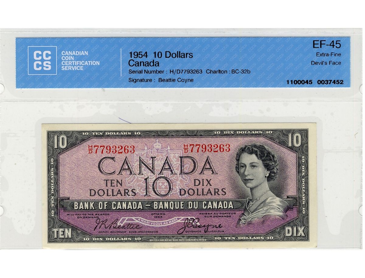 1954 Bank of Canada; 10 Dollars BC-32b, CCCS EF45; #HD7793263.