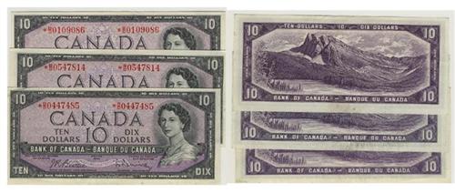 3 fresh asterisk replacement notes. Nicely centered, light creasing.*B/D prefix, serial #'s 0447485; 0547814; and 0109086. Beattie-Rasminsky BC-40bA, no return.