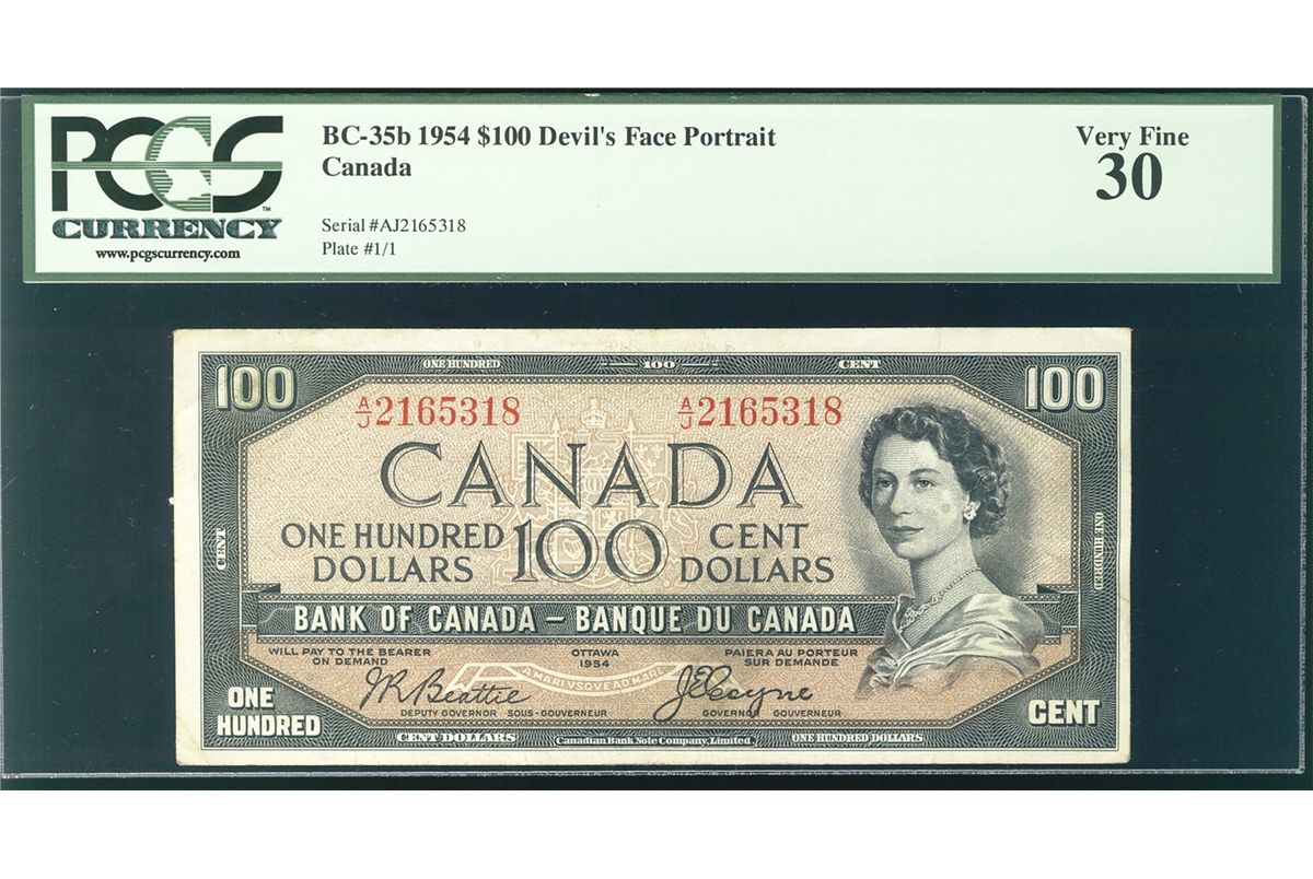 1954 Bank of Canada; 100 Dollars, BC-35b Devil's Face #AJ2165318 PCGS VF30.