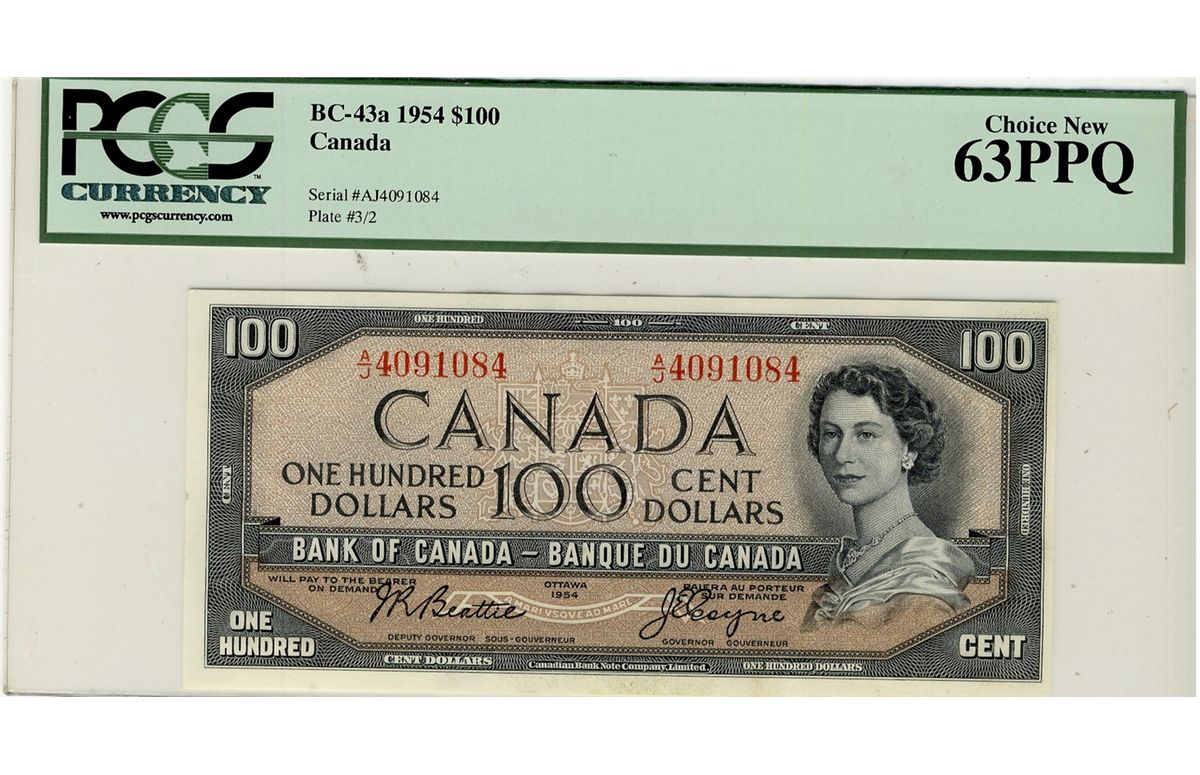 1954 Bank of Canada; 100 Dollars, BC-43a #4091084 PCGS CH UNC63PPQ.