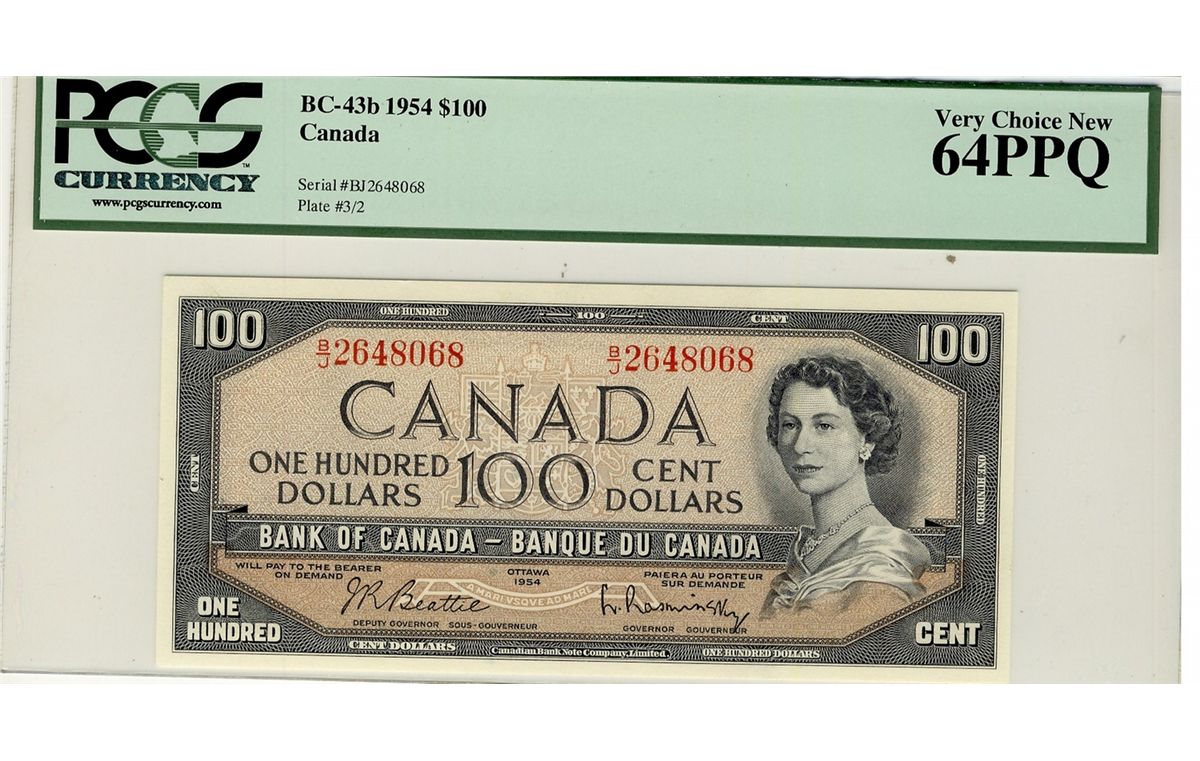 1954 Bank of Canada; 100 Dollars, BC-43b #BJ2648068 PCGS CH UNC64PPQ.