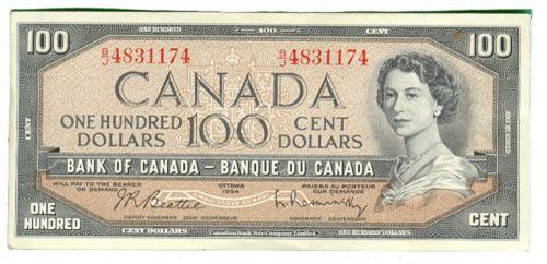 Well centred crisp and fresh. CBN issue, Queen Elizabeth portrait, #B/J4831174 Beattie-Rasminsky BC-43b (no return).