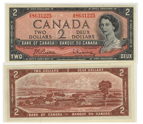 Scarcer note, non-test issue.. Fresh color with a diagonal counting crease/fold right corner above the hair. Note has been lightly processed. #G/R8631225, Beattie-Rasminsky (no return).
