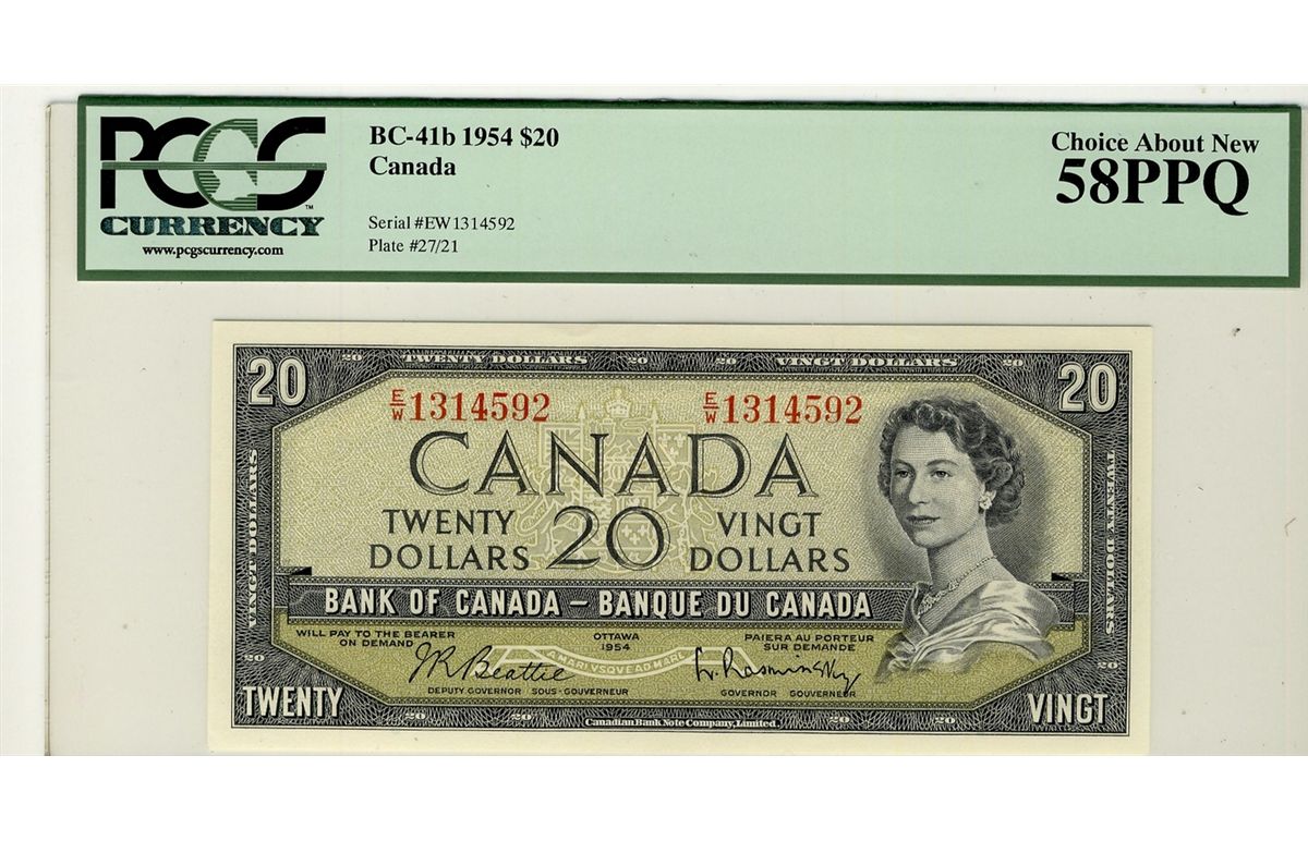 1954 Bank of Canada; $20 BC-41b #EW1314592 PCGS CH AU58PPQ.