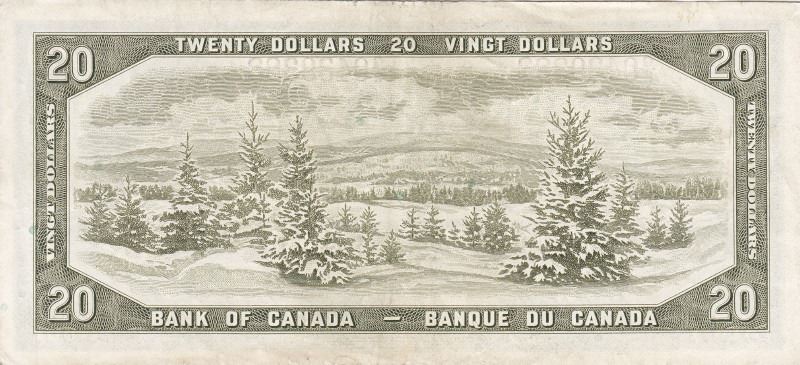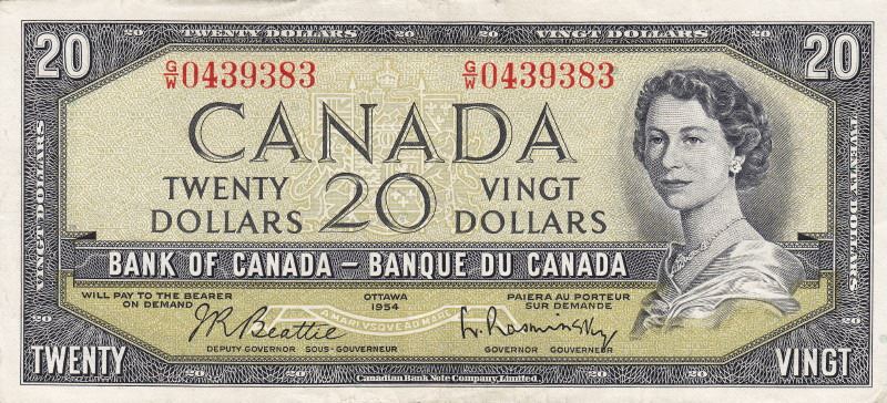 1954 Bank of Canada $20 Bank Note - Modified Portrait - Beattie / Rasminsky
