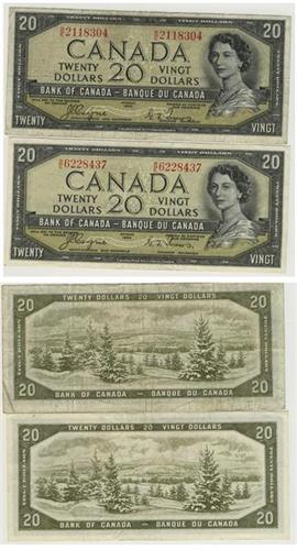 1954 Bank of Canada $20 Devil Face Pair