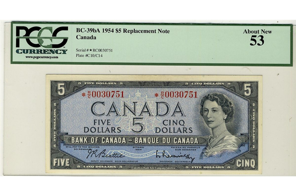 1954 Bank of Canada; $5 BC-39bA #*RC0030751 PCGS AU53.