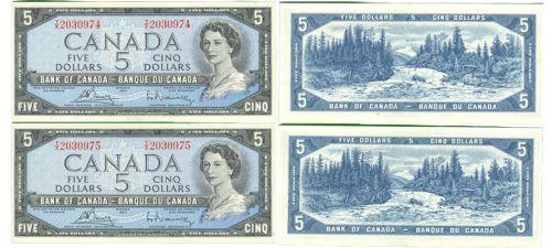 0802 - 1954 Bank of Canada $5 Pair - Unc