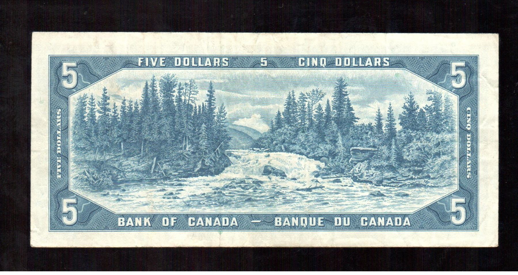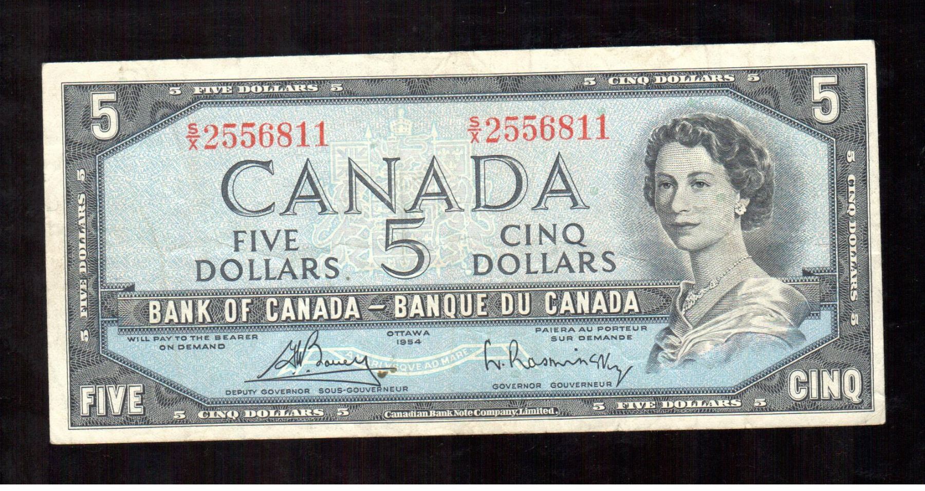 Lot 97; Dates include 1954, $5 note Bouey-Rasminsky F-VF average grade