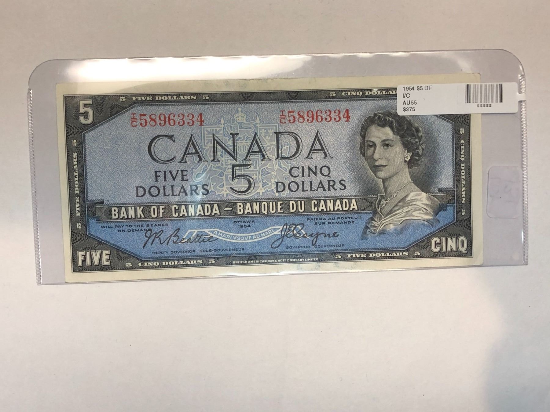 1954 Bank of Canada Devils Face $5 Bill - AU55