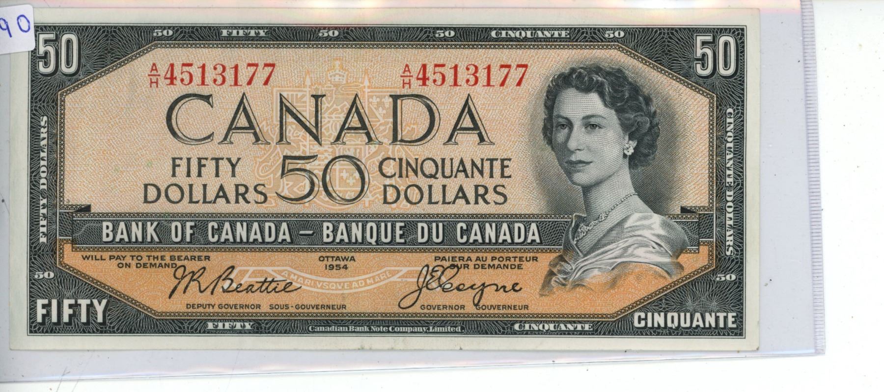 1954 Bank of Canada Fifty Dollar Bank Note.