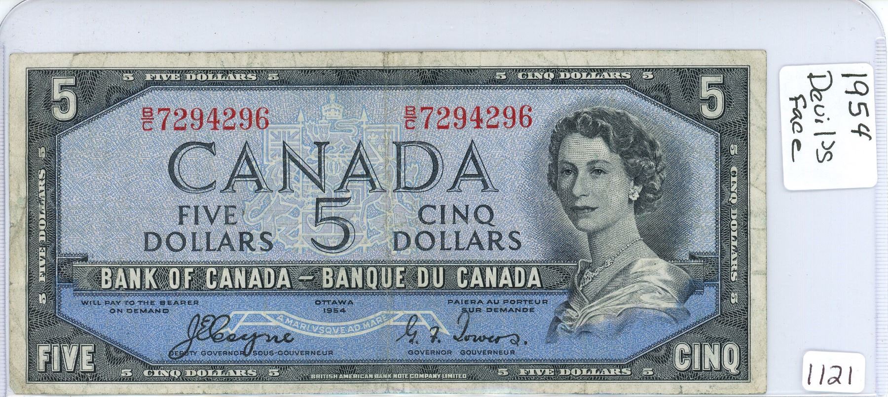 1954 Bank of Canada Five Dollar Bank Note - Devil's Face
