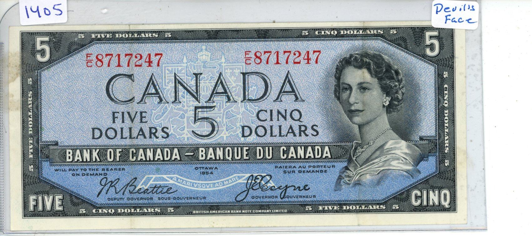 1954 Bank of Canada - Five Dollar Bank Note - Devil's Face