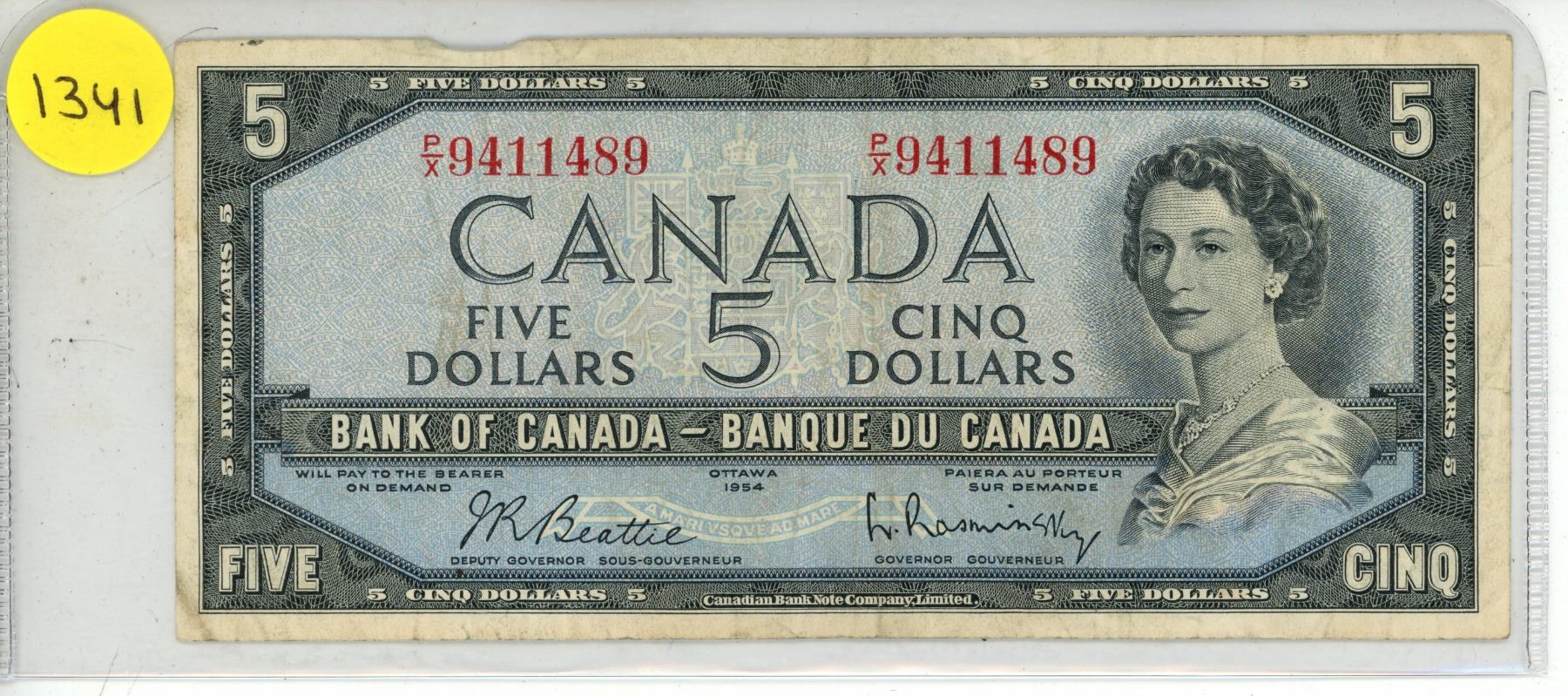 1954 Bank of Canada Five Dollar.