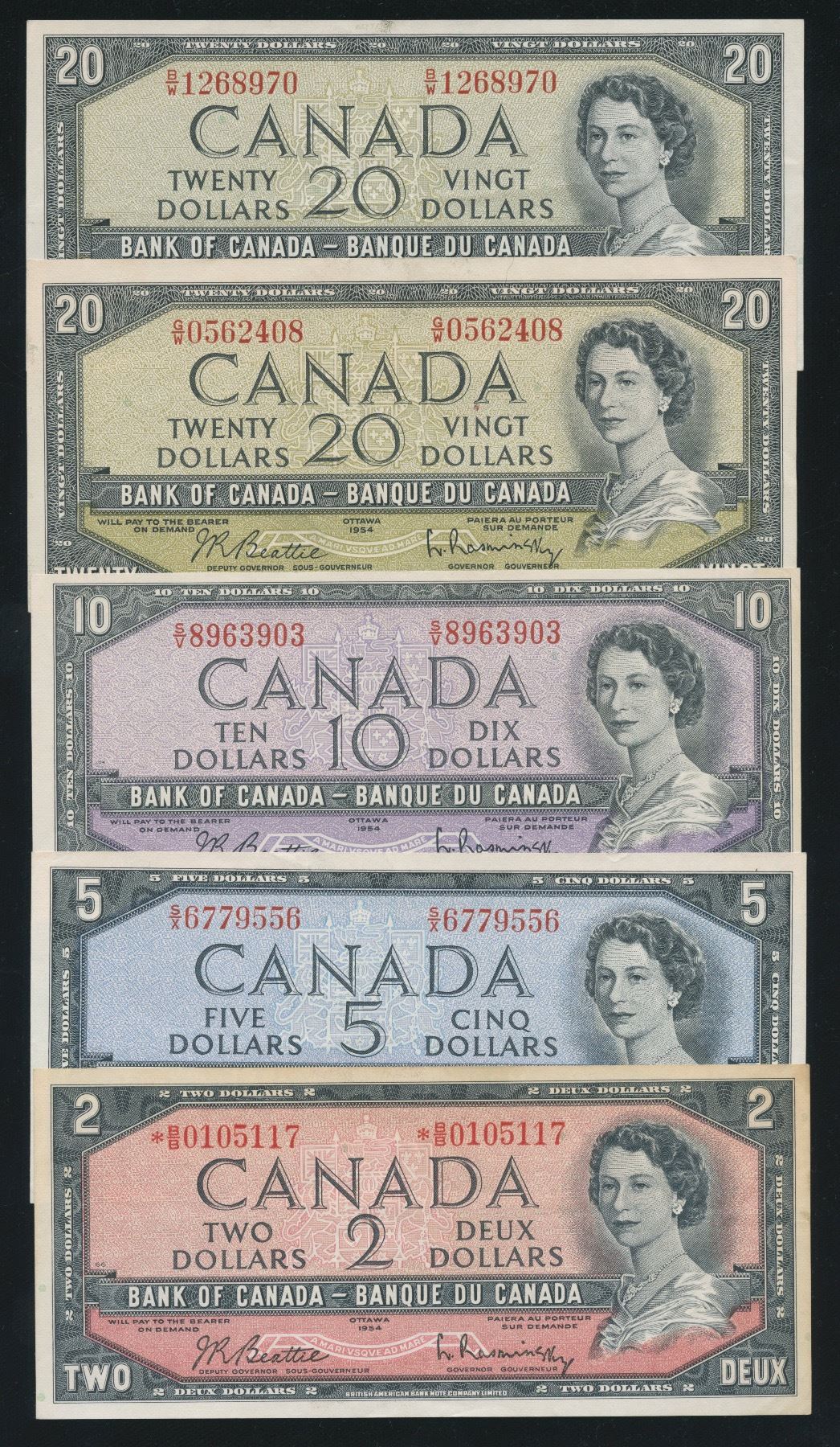 1954 Bank of Canada - Lot of 5 Notes in AU Conditions