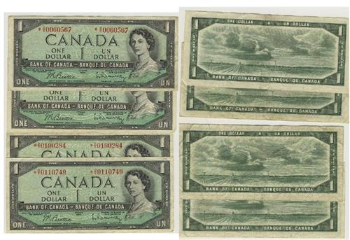 4 circulated asterisk replacement notes. Fresh with creasing. *OY prefix, serial #'s 0060567; 0016064; 0110749; 0190284. BC-37bA, no return.