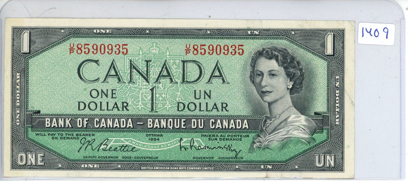 1954 Bank of Canada - One Dollar Bank Note